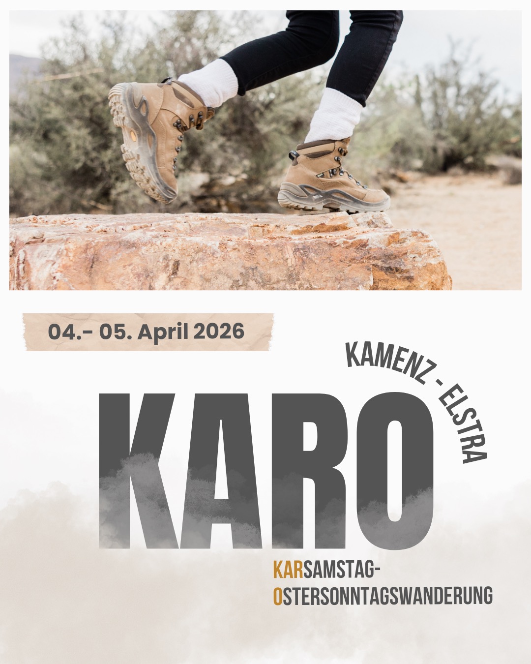 KARO steht für KARsamstag-Ostersonntagswanderung. Dabei machen wir uns gemeinsam auf den Weg, Jesus während seines Leidens, Todes und nach seiner Auferstehung nachzugehen. Lass‘ uns entdecken, wie wir ihm folgen und seine Spuren in unserem Leben erkennen können.